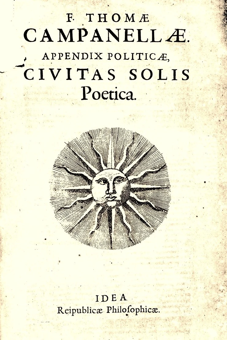 In questo 2026 costa fatica immaginare — come fece Campanella circa un secolo dopo Thomas More (fonte dell’immagine) — un sistema ordinato, armonioso e razionale; ma crediamo che sia necessario farlo proprio perché è difficile. Se non siamo noi di Clorofilla a parlare di un mondo su cui deve tornare a splendere il sole, chi altri può farlo con altrettanta spontaneità e convinzione?